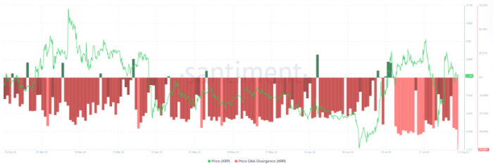 XRP價格當前顯示出明顯的看跌跡象,特別是Chaikin資金流(CMF)指示出資金流出已達到月度高點。這表明,投資者正在撤出資金,市場拋售壓力逐漸增大,可能進一步影響價格走勢。