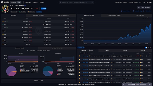 Grayscale是一家為公開(kāi)市場(chǎng)提供多種產(chǎn)品的資產(chǎn)管理公司,是Crypto集團(tuán)(DigitalCurrencyGroup)的子公司。Grayscale所有金融產(chǎn)品的數(shù)字資產(chǎn)也由Coinbase托管。雖然Grayscale公開(kāi)報(bào)告其Bitcoin余額,但他們拒絕披露信托的鏈上地址——Arkham能夠找到這些地址,總計(jì)627,000枚Bitcoin,分布在超過(guò)1750個(gè)不同地址,每個(gè)地址持有不超過(guò)1000枚Bitcoin。Grayscale目前持有232,178枚Bitcoin,價(jià)值270.1億美元。哪個(gè)政府擁有最多Bitcoin