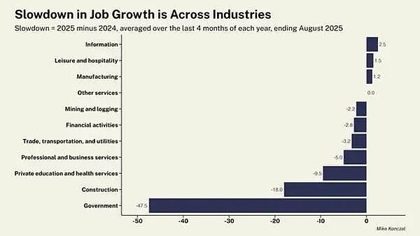 去年二月,我在一篇文章中指出,美國經(jīng)濟(jì)出現(xiàn)了“滯脹跡象”。“滯脹”是指國民產(chǎn)出和就業(yè)停滯不前或增長緩慢,而物價(jià)通脹卻持續(xù)上升甚至加速。美國經(jīng)濟(jì)顯然一直在放緩。季度增長率不穩(wěn)定,主要原因是進(jìn)口大幅波動(dòng)。今年年初,由于企業(yè)試圖“搶在”特朗普提高進(jìn)口關(guān)稅之前,進(jìn)口量激增;隨后,隨著關(guān)稅開始影響到工業(yè)所需的進(jìn)口零部件,實(shí)際GDP增長放緩。但今年上半年,在特朗普?qǐng)?zhí)政期間,經(jīng)濟(jì)明顯放緩。